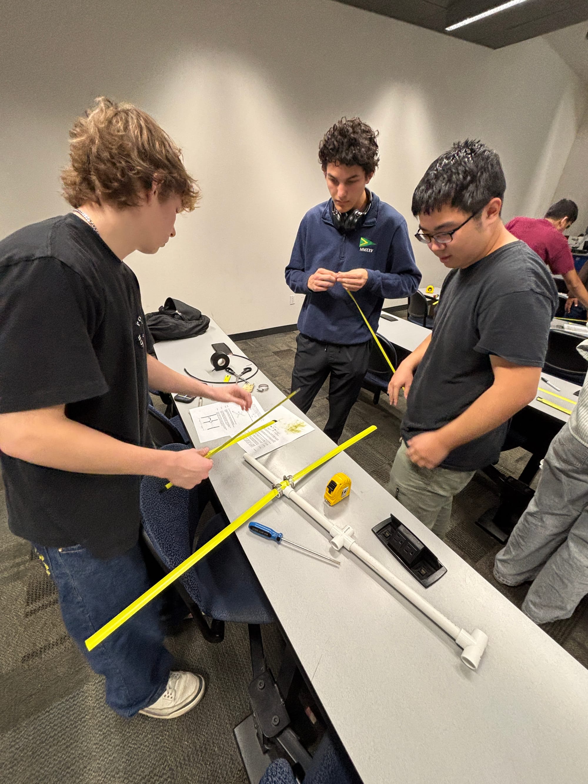 After a quick presentation on Amateur Radio and the principles behind Yagi-Uda antennas, approximately 25 students divided into teams to build their very own 2m tape measure yagi!